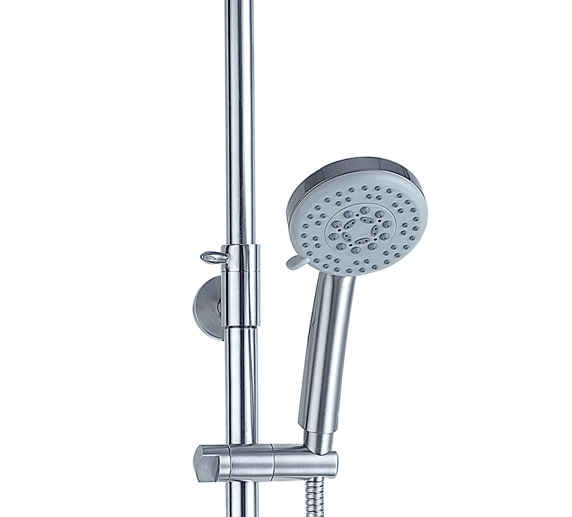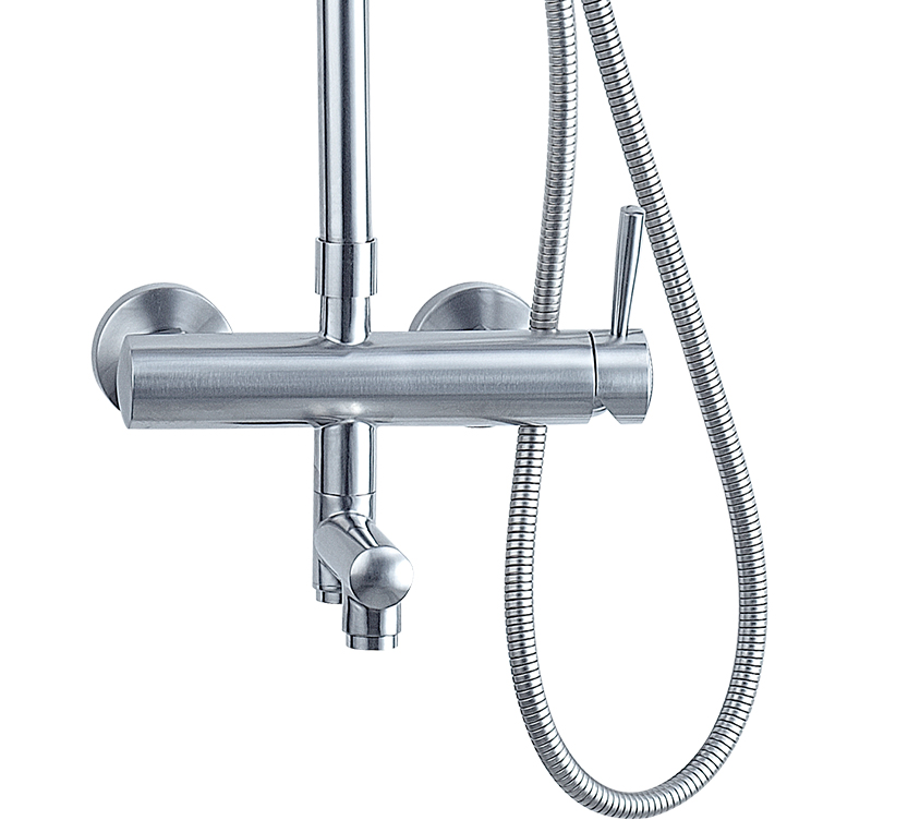 沐浴柱由不銹鋼整體壓鑄成型,簡潔時尚、結實耐用。上下呼應的斜角設計,讓您的浴室更具美感,又避免了金屬銳角對人體的意外碰撞,,彰顯人性關懷。