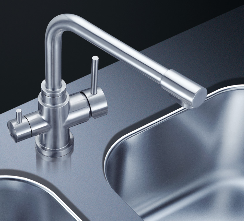 阿發水槽立邊采用國際先進的10-25°小R角一次成型拉伸技術,更具立體感與時尚潮流,亦能充分擴展水槽利用空間;一次成型拉伸技術,杜絕了焊接工藝易產生的水槽生銹,脫焊事故,充分保障水槽50年以上的使用壽命
