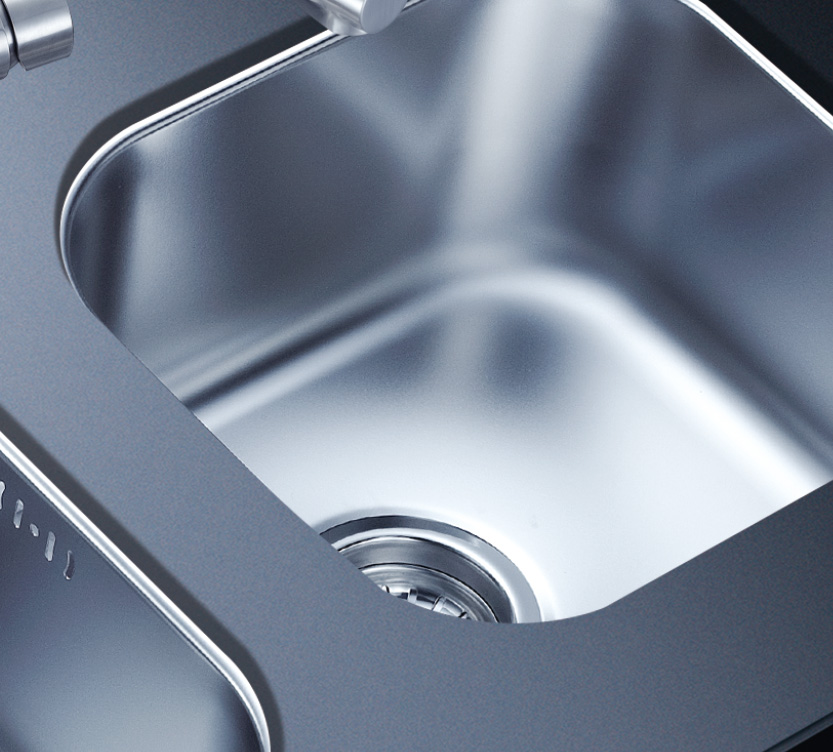 水槽四邊條采用一次成型的折彎加強筋工藝,雙倍堅固,承重力更強,解決了普通焊接工藝容易出現的凹點、脫焊、易割手等問題。專業配置的密封條和固定夾,安裝平整度高,不滲水,不松動