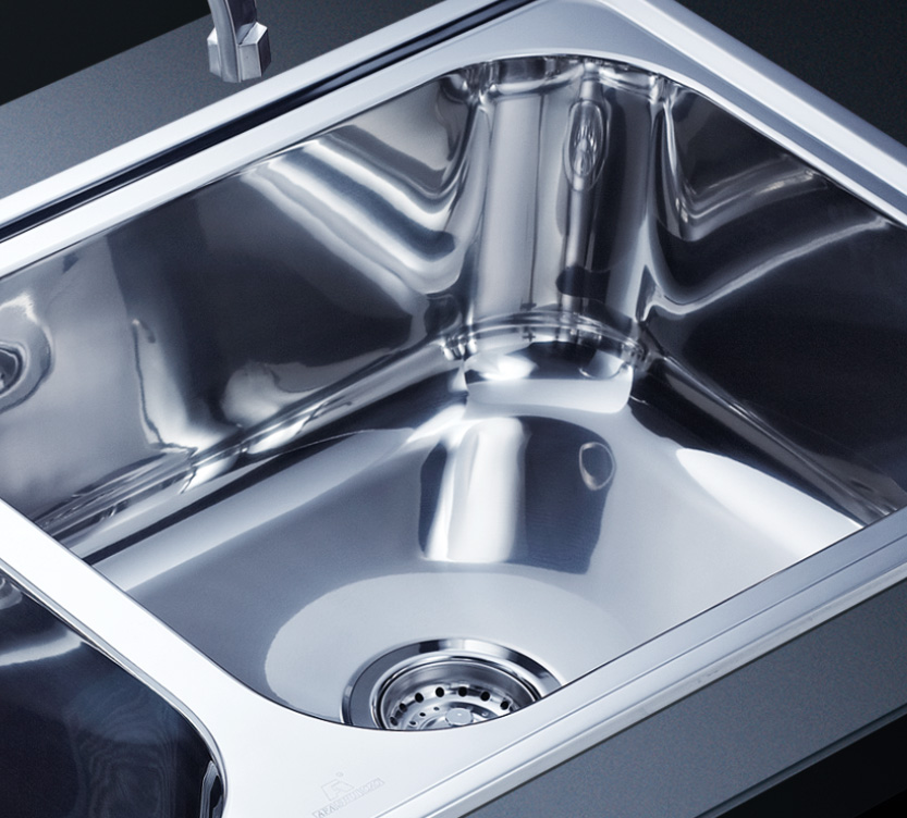 阿發(fā)水槽立邊采用國際先進的10-25°小R角一次成型拉伸技術(shù),更具立體感與時尚潮流,亦能充分擴展水槽利用空間;一次成型拉伸技術(shù),杜絕了焊接工藝易產(chǎn)生的水槽生銹,脫焊事故,充分保障水槽50年以上的使用壽命