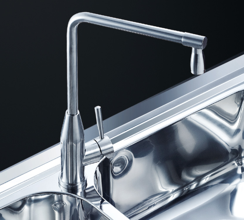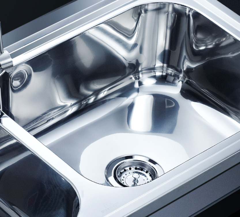 阿發水槽立邊采用國際先進的10-25°小R角一次成型拉伸技術,更具立體感與時尚潮流,亦能充分擴展水槽利用空間;一次成型拉伸技術,杜絕了焊接工藝易產生的水槽生銹,脫焊事故,充分保障水槽50年以上的使用壽命