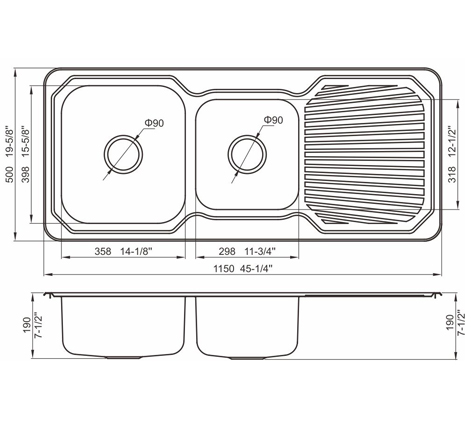 槽底采用斜面壓痕,四輻導流槽設(shè)計,與平面壓痕和無痕水槽相比,導水更為流暢,下水更迅速,能有效防止積水,消除沉淀物