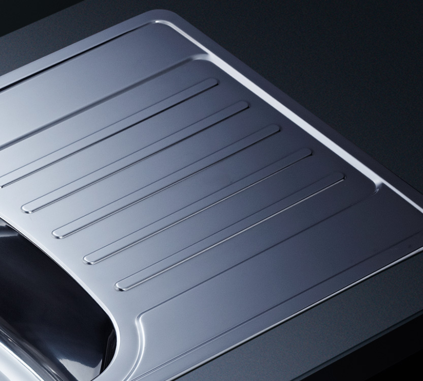 阿發(fā)水槽立邊采用國(guó)際先進(jìn)的10-25°小R角一次成型拉伸技術(shù),更具立體感與時(shí)尚潮流,亦能充分?jǐn)U展水槽利用空間;一次成型拉伸技術(shù),杜絕了焊接工藝易產(chǎn)生的水槽生銹,脫焊事故,充分保障水槽50年以上的使用壽命