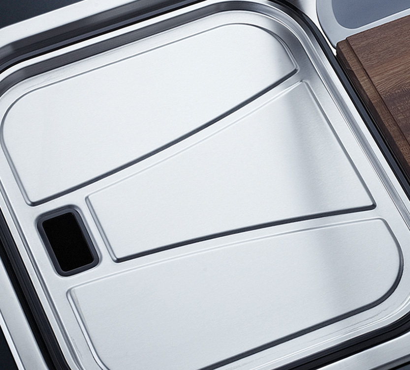 完美的水槽加固設計,有效防止溢水,水槽槽體一次成形的凹型設計,免除流水滲漏損壞櫥柜,完美凹型水槽,打造優雅廚房