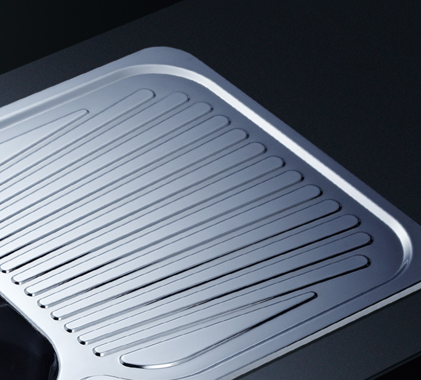 阿發水槽立邊采用國際先進的10-25°小R角一次成型拉伸技術,更具立體感與時尚潮流,亦能充分擴展水槽利用空間;一次成型拉伸技術,杜絕了焊接工藝易產生的水槽生銹,脫焊事故,充分保障水槽50年以上的使用壽命
