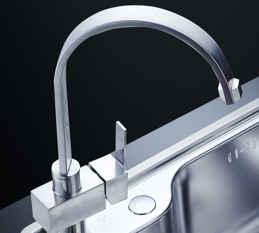 阿發水槽立邊采用國際先進的10-25°小R角一次成型拉伸技術,更具立體感與時尚潮流,亦能充分擴展水槽利用空間;一次成型拉伸技術,杜絕了焊接工藝易產生的水槽生銹,脫焊事故,充分保障水槽50年以上的使用壽命