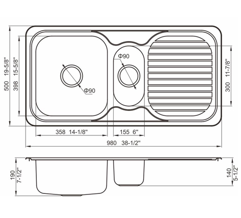 槽底采用斜面壓痕,四輻導(dǎo)流槽設(shè)計,與平面壓痕和無痕水槽相比,導(dǎo)水更為流暢,下水更迅速,能有效防止積水,消除沉淀物
