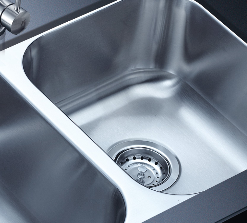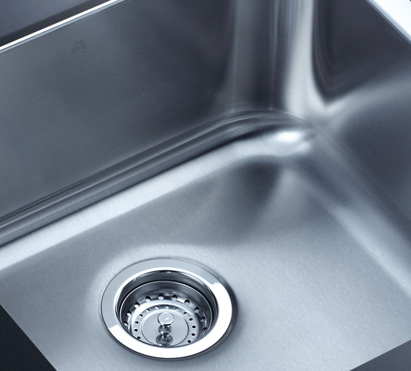 阿發水槽整體經拉絲處理,質地更加光滑,視覺更加柔和。能有效抵擋異物撞擊,刮傷及磨損,防止油污沾染,常用常新;柔和的光澤令水槽平添高雅氣質,更能避免鏡面材質反射的光污染