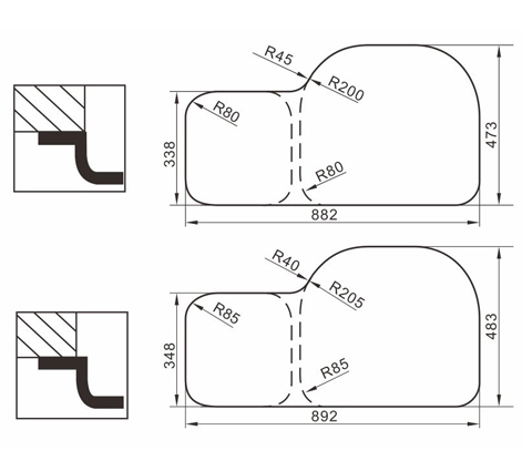水槽四邊條采用一次成型的折彎加強筋工藝,雙倍堅固,承重力更強,解決了普通焊接工藝容易出現(xiàn)的凹點、脫焊、易割手等問題。專業(yè)配置的密封條和固定夾,安裝平整度高,不滲水,不松動