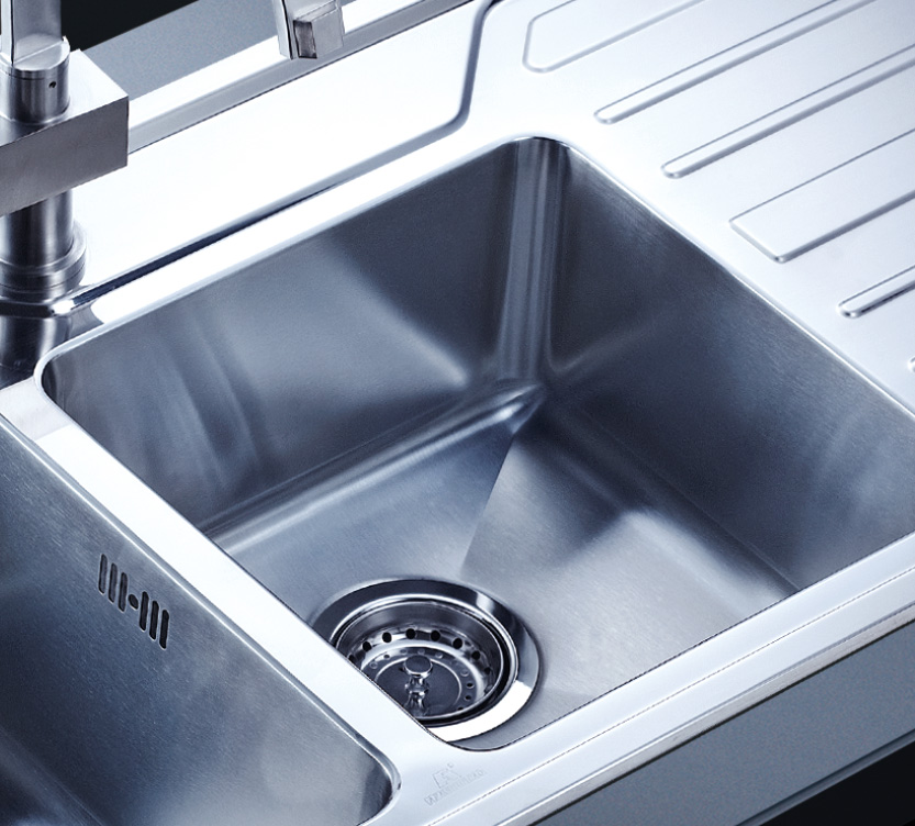 阿發水槽整體經拉絲處理,質地更加光滑,視覺更加柔和。能有效抵擋異物撞擊,刮傷及磨損,防止油污沾染,常用常新;柔和的光澤令水槽平添高雅氣質,更能避免鏡面材質反射的光污染