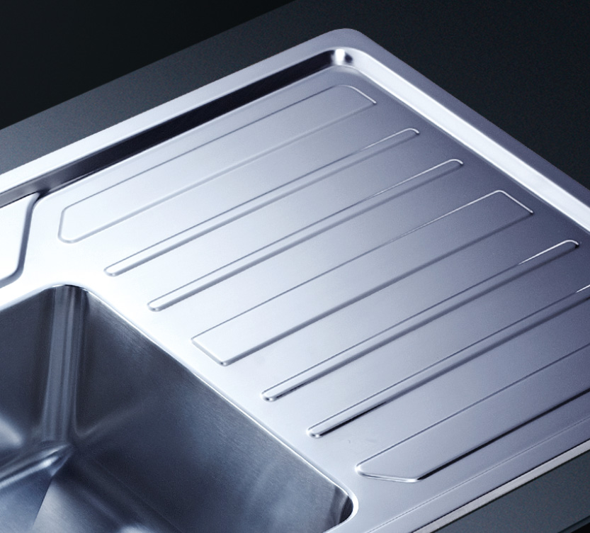 阿發水槽立邊采用國際先進的10-25°小R角一次成型拉伸技術,更具立體感與時尚潮流,亦能充分擴展水槽利用空間;一次成型拉伸技術,杜絕了焊接工藝易產生的水槽生銹,脫焊事故,充分保障水槽50年以上的使用壽命