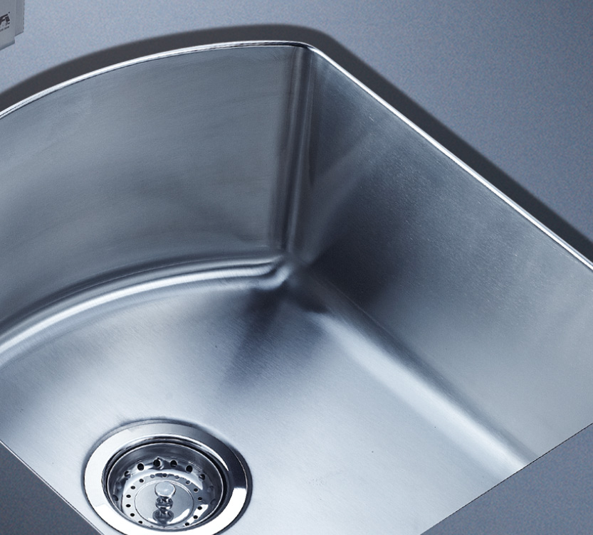 阿發水槽整體經拉絲處理,質地更加光滑,視覺更加柔和。能有效抵擋異物撞擊,刮傷及磨損,防止油污沾染,常用常新;柔和的光澤令水槽平添高雅氣質,更能避免鏡面材質反射的光污染
