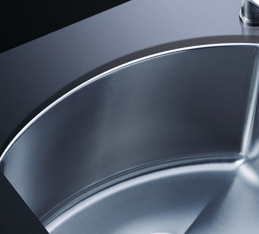 阿發水槽立邊采用國際先進的10-25°小R角一次成型拉伸技術,更具立體感與時尚潮流,亦能充分擴展水槽利用空間;一次成型拉伸技術,杜絕了焊接工藝易產生的水槽生銹,脫焊事故,充分保障水槽50年以上的使用壽命