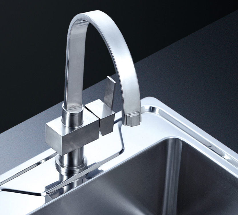 阿發水槽立邊采用國際先進的10-25°小R角一次成型拉伸技術,更具立體感與時尚潮流,亦能充分擴展水槽利用空間;一次成型拉伸技術,杜絕了焊接工藝易產生的水槽生銹,脫焊事故,充分保障水槽50年以上的使用壽命