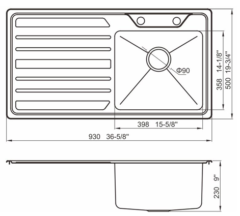 槽底采用斜面壓痕,四輻導流槽設計,與平面壓痕和無痕水槽相比,導水更為流暢,下水更迅速,能有效防止積水,消除沉淀物