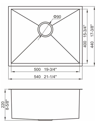 槽底采用斜面壓痕,四輻導流槽設計,與平面壓痕和無痕水槽相比,導水更為流暢,下水更迅速,能有效防止積水,消除沉淀物