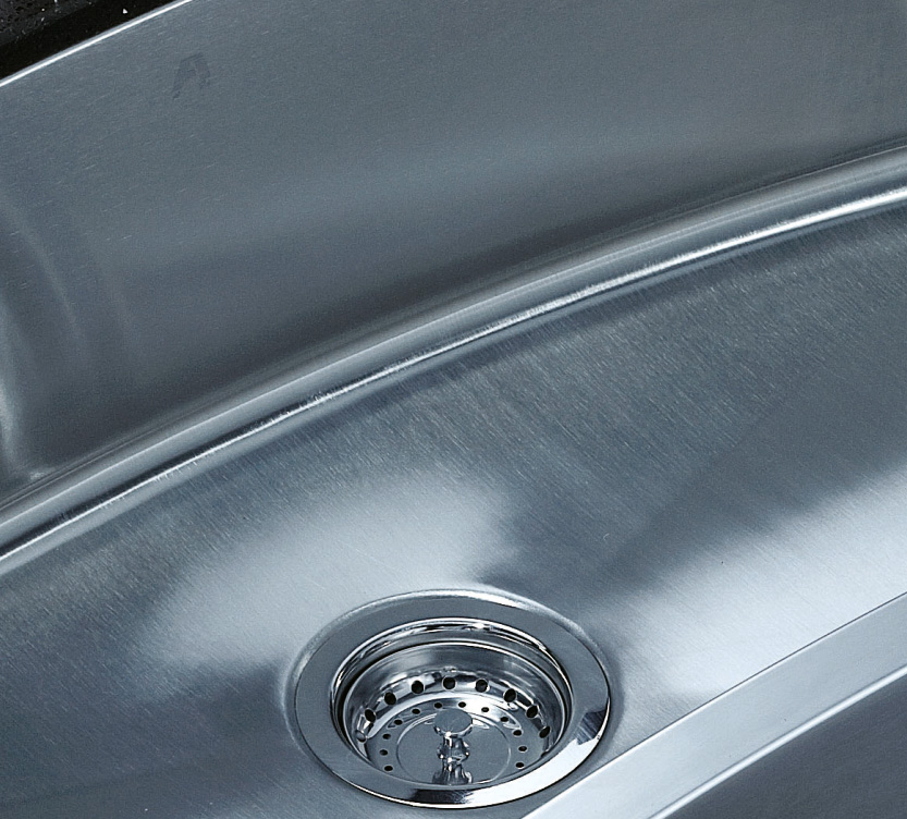 阿發水槽整體經拉絲處理,質地更加光滑,視覺更加柔和。能有效抵擋異物撞擊,刮傷及磨損,防止油污沾染,常用常新;柔和的光澤令水槽平添高雅氣質,更能避免鏡面材質反射的光污染